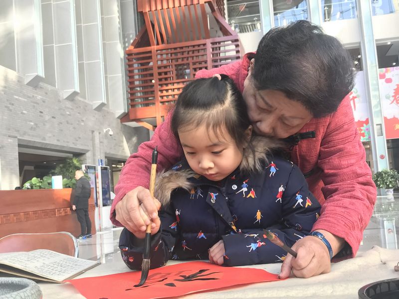 冬日的首都寒意袭人,但一副副带着淡淡墨香和浓浓祝福的春联却为寒冬增添了无限温暖。一上午,二十余名参加活动的群众和书法爱好者在洒金红纸上挥毫泼墨,书写下对新年的祝福。现场人群络绎不绝,或是使用工作人员备好的描红春联现场临摹,或是自撰联句自由书法,全都满载而归,收获了自己动手的快乐。