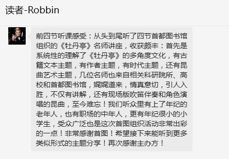 学员们表示,通过这次学习,对《牡丹亭》有了更直观的认识,对传统戏曲也增添了更浓厚的兴趣。学员课后主动与老师交流上课心得,寻求更多戏曲相关的资源,同时还在首都图书馆搜索相关资料,希望了解更多背景知识。线上学员每期坚持在线打卡,积极点赞,并有众多学员期待体验线下课程。