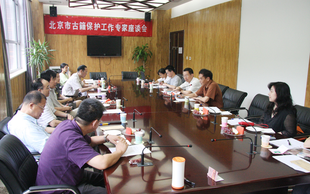 2010年8月18日,北京市古籍保护中心召开北京市古籍保护工作专家座谈会。中心邀请中国国家博物馆研究员黄燕生先生、北京大学图书馆古籍部主任沈乃文先生、国家科学图书馆总馆研究馆员罗琳先生、故宫博物院图书馆研究院翁连溪先生、中国人民大学古籍整理研究所研究馆员宋平生先生、清华大学科学技术史暨古文献研究所刘蔷女士等专家学者,就如何更好发挥北京市古籍保护中心的作用、拓展北京市古籍普查工作、促进古籍普查平台在北京市的试点和推广等问题展开广泛讨论。会议由北京市古籍保护中心工作小组组长周心慧主持,首都图书馆馆长倪晓建出席会议并对北京市古籍保护中心下一步的工作提出了指导性意见。